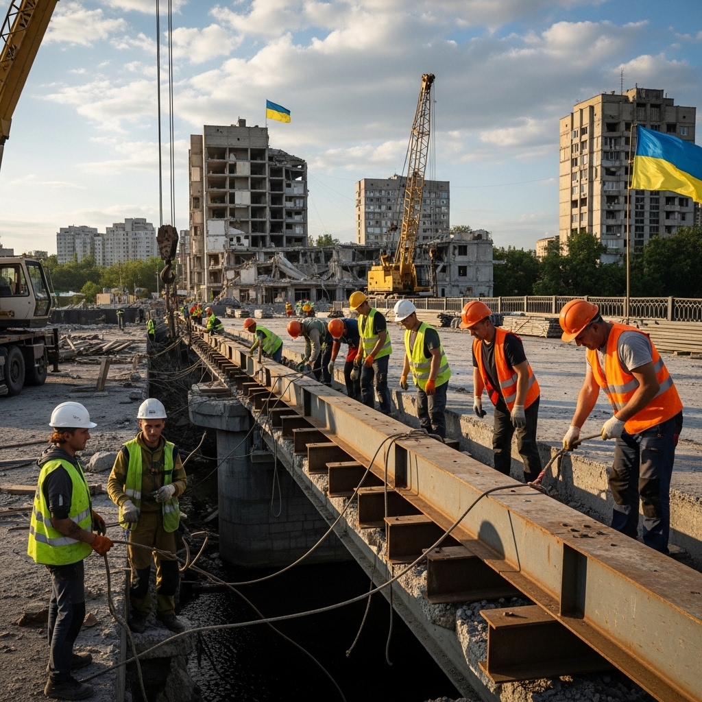 도로, 교량, 항만, 철도 등 국가의 동맥을 다시 잇는 단계입니다. 대규모 장비와 건설 자재가 투입됩니다.