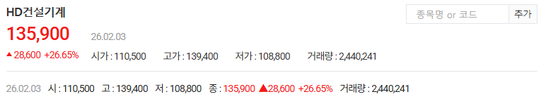 - 기업개요: HD현대그룹 계열의 글로벌 건설기계 전문 기업입니다. 굴착기, 휠로더 등을 생산하며 전 세계적인 판매망을 갖추고 있어 재건 사업 시작 시 가장 먼저 대규모 수주가 기대되는 종목입니다.